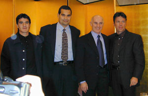 ≪マテウス 最後の雄姿2≫世界オールスターズのサッキ監督(イタリア)GKチラベルト(パラグアイ)、MFオルテガ(アルゼンチン)が都内で会見したが、途中で元ドイツ代表主将のMFマテウスが飛び入り参加するハプニングが起きた。マテウスは「日本に来るのは初めてだが、東京の町も魅力的だし、日本の人もやさしい。明日(3日)日本でプレーできることを楽しみにしている」と意気込みを披露。米国MLSのメトロスターズを退団し現役引退を表明しており、闘争心にあふれたプレーは見納めになりそうだ。